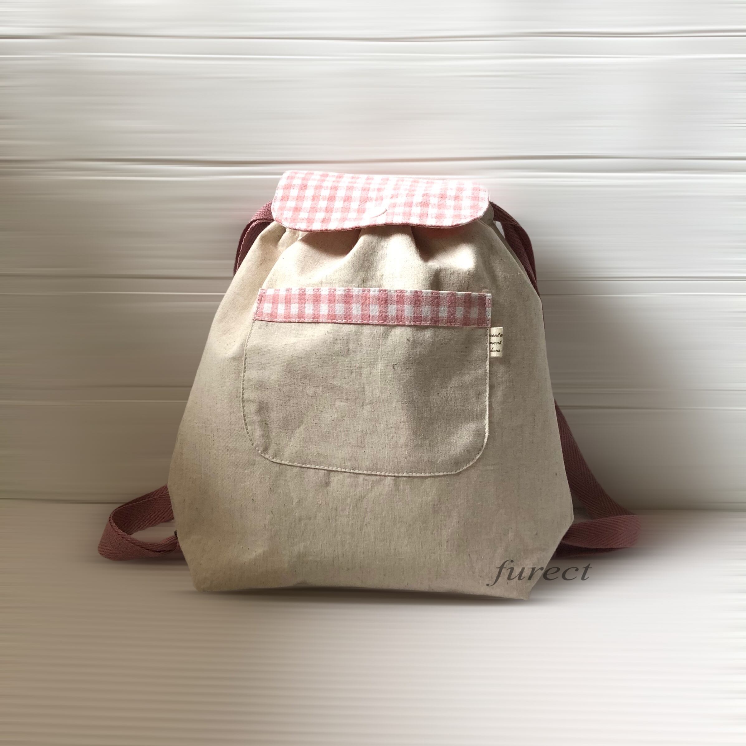 生成りでシンプルだけどピンクのチェック柄が可愛いです♡